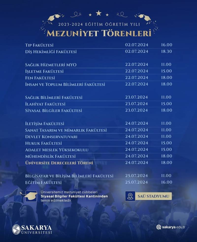 Our Graduation Ceremony will be held on July 24, 2024 at 11:00 at the Stadium of our University.