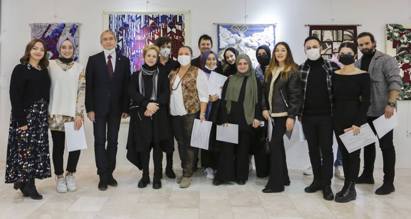 Geleneksel Türk Sanatları Bölümünden 2019-2020 ve 2020-2021 yıllarında Tezhip Sanatı ASD., Çini Tasarımı ve Onarımı ASD., Halı Kilim ve Geleneksel Kumaş Desenleri ASD. ile Hat ASD.’den mezun öğrenciler arasından 39 kişinin katıldığı ve Covid pandemisi nedeni ile iki yıldır gerçekleştirilemeyen mezuniyet sergisinde 70 eser yüz yüze olarak geniş bir katılımla sergilendi. Sanat Tasarım ve Mimarlık Fakültesi Sanat Galerisi’nde 17-26.11.2021 tarihleri arasında gösterimde olan serginin açılışına SAÜ Rektörü Prof. Dr. Fatih Savaşan, Rektör yardımcısı Prof. Dr. Barış Tamer Tonguç, Hukuk Fakültesi