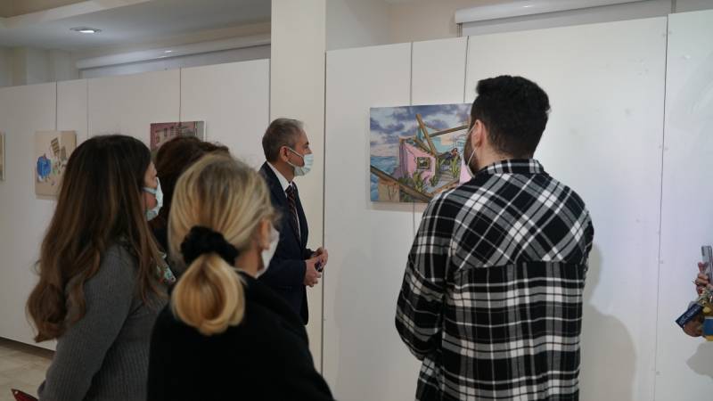 SAÜ Sosyal Bilimler Enstitüsü Resim Anasanat Dalında tezli yüksek lisans öğrencileri olan Önder Caymaz ve Melike Ayhan’ın kişisel sergilerinin açılışı Sanat Tasarım ve Mimarlık Fakültesi Dekanı Prof. Dr. Tahsin Turgay, Dekan yardımcıları Doç. M. Hülya Doğru ve Dr. Öğr. Üyesi Dicle Öney, öğrencilerin tez danışmanları Dr. Öğr. Üyesi Gülseren Budumlu İldeş ile Resim, Seramik ve Cam, Geleneksel Türk Sanatları, Mimarlık ve Görsel İletişim Tasarımı Bölümlerinden öğretim elemanları ve öğrencilerin katılımıyla 21.02.2022 tarihinde gerçekleştirildi.