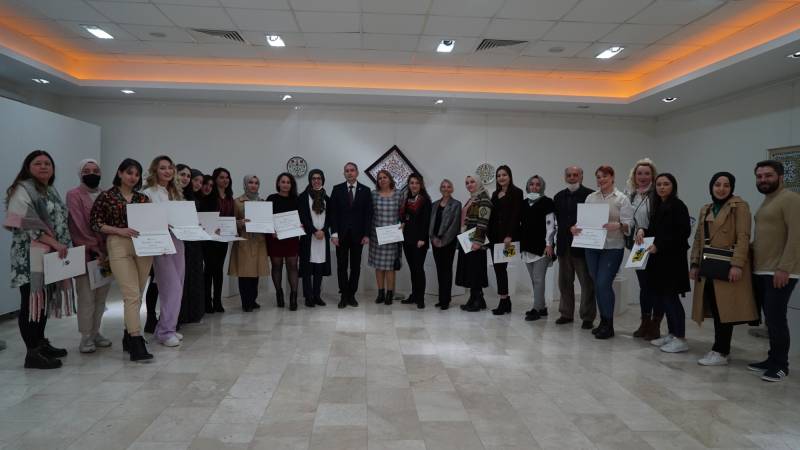 Sakarya Üniversitesi Sanat Tasarım ve Mimarlık Fakültesi Geleneksel Türk Sanatları Bölümü Çini Tasarımı ve Onarımı Anasanat Dalı öğrencilerinin “Bahar-ı Alem” isimli karma çini sergisi 28 Mart 2022 Pazartesi günü saat 12:30’da Sanat Tasarım ve Mimarlık Fakültesi Sanat Galerisi’nde açıldı. Sergi, Sakarya Üniversitesi Rektör Yardımcılarından Prof. Dr. Hatem Akbulut, Sanat Tasarım ve Mimarlık Fakültesi Dekanı Prof. Dr. Tahsin Turgay, Dekan Yardımcıları Doç. M. Hülya Doğru, Dr. Ör. Üyesi Dicle Öney, Çini Tasarımı ve Onarımı Anasanat Dalı Başkanı Öğr. Gör. Alev Demirkesen, Öğr. Gör Songül Ergün ve Arş. Gör. Emsele Bal, Fakültenin Bölümlerinden öğretim elemanları ve öğrencilerden oluşan kalabalık bir grup ile açıldı. Sergide özgün tasarım çalışmaları olan öğrenciler eserlerinin üretim süreçlerini davetlilerle paylaştılar. Kendilerine katılım belgeleri Prof. Dr. Hatem Akbulut ve Prof. Dr. Tahsin Turgay tarafından takdim edildi. Sergide yer alan ve Anadolu Selçukluları döneminden 16. Yüzyıla kadar farklı dönemlerden esintiler taşıyan eserler on altı öğrencinin geleneksel çini teknikleriyle uygulanması ile üretilmişlerdir. Sanatseverler sergiyi 3 Nisan 2022 tarihine kadar ziyaret edebilirler…