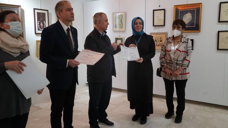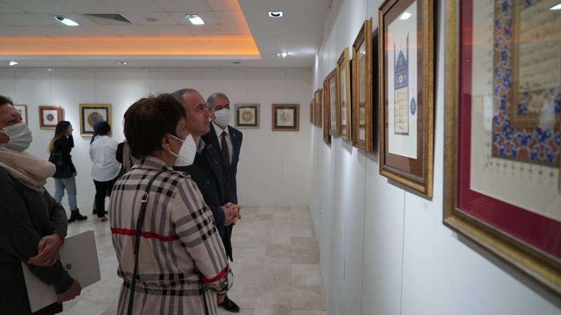 Öğr. Gör. Ayşen Karakoç Civili ve on beş lisans öğrencisinin tezhip, minyatür ve hat eserleri ile katıldığı “Sanatın Bereketi” isimli karma sergi 11 Nisan 2022 tarihinde saat 12.00’de Sanat Tasarım ve Mimarlık Fakültesi Sanat Galerisi’nde açıldı. Sergi açılışı Rektör Prof. Dr. Fatih Savaşan, Sanat Tasarım ve Mimarlık Fakültesi Dekanı Prof. Dr. Tahsin Turgay, Dekan yardımcıları Doç. M. Hülya Doğru ve Dr. Öğr. Üyesi Dicle Öney, Sanat Tasarım ve Mimarlık Fakültesi’nin öğretim elemanları, eserleri sergilenen Tezhip Sanatı ASD ve Hat ASD. öğrencileri ile fakültenin diğer bölümlerinden öğrenciler ve kalabalık bir izleyici grubunun katılımı ile gerçekleştirildi. Sanat Tasarım ve Mimarlık Fakültesi Geleneksel Türk Sanatları Bölümü sergiyi sanatseverler 17 Nisan 2022 tarihine kadar ziyaret edebilirler.