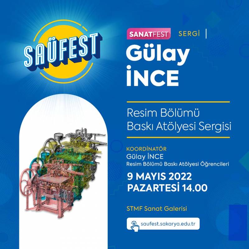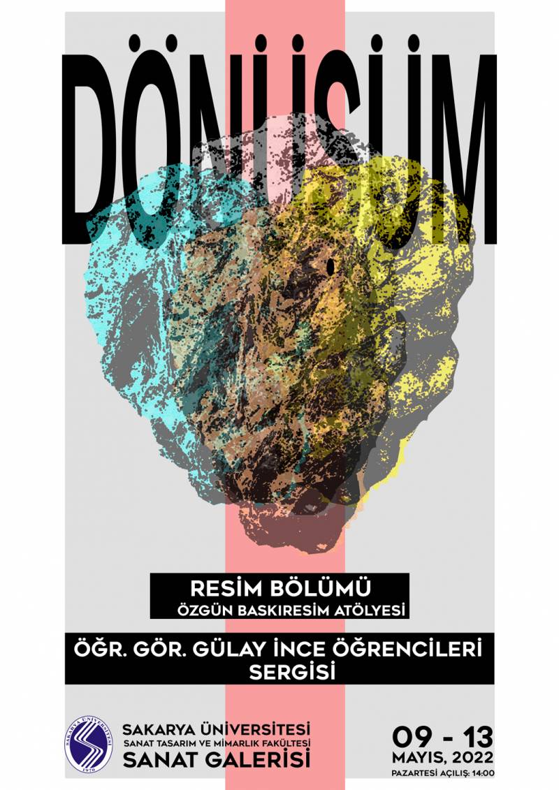 SAÜ Sanat Tasarım ve Mimarlık Fakültesi Resim Bölümü Özgün Baskıresim Atölyesi Öğr. Gör. Gülay İnce yönetimindeki öğrencilerin Sakarya ilini de konu alan 2021-2022 yıl içi çalışmaları ile pandemi nedeniyle sergilenemeyen 2019 yılı çalışmalarını kapsayan ‘’DÖNÜŞÜM’’ adlı sergi ,Sanat Tasarım ve Mimarlık Fakültesi Sanat Galerisinde 09.05.2022 tarihinde saat 14.00 da açılacaktır.