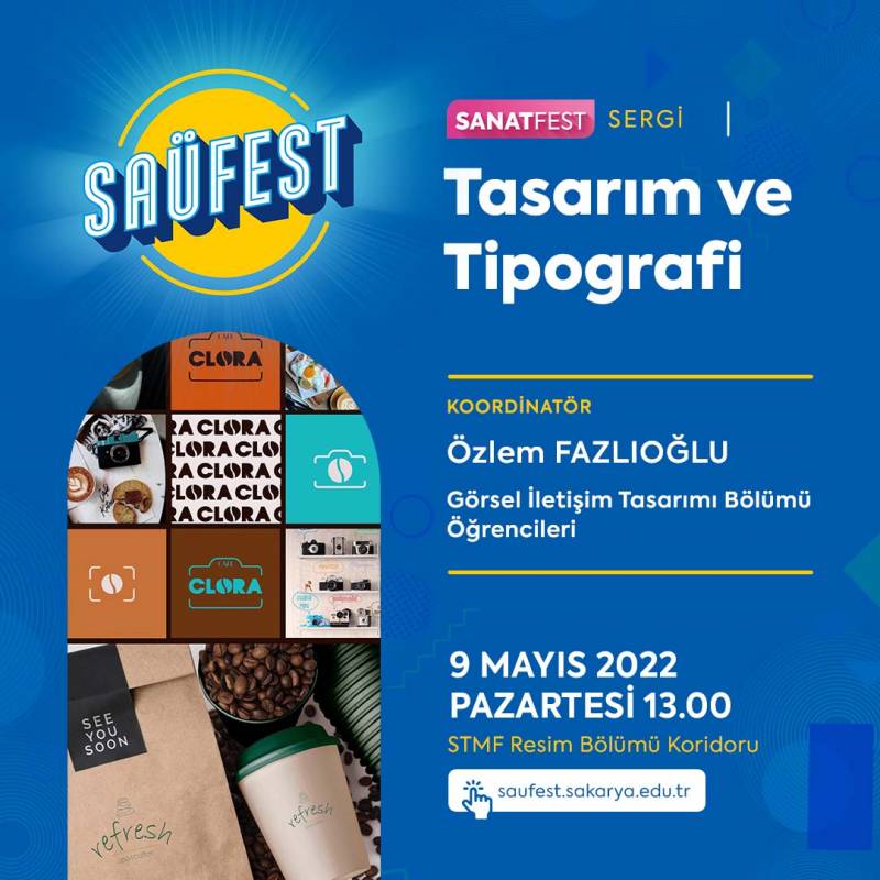 Sakarya Üniversitesi Sanat Tasarım ve Mimarlık Fakültesi, Görsel İletişim Tasarımı bölümü öğrencilerinin Grafik Tasarım, Tasarımda Bilgisayar Uygulamaları ve Tipografik Uygulamalar derslerinde yaptıkları tasarımlar, SAÜFEST kapsamında Tasarım ve Tipografi Sergisi’nde ziyaretçilerle buluşacak. Öğr. Gör. Özlem Fazlıoğlu koordinatörlüğünde gerçekleşecek olan sergi SAÜFEST boyunca Sanat Tasarım ve Mimarlık Fakültesi 3. kat koridorunda ziyaret edilebilecek.