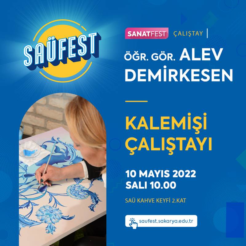 SAÜFEST kapsamında Arş. Gör. Alev Demirkesen koordinatörlüğünde gerçekleştirilecek olan "Kalemişi Çalıştayı" 10 Mayıs 2022'de saat 10.00'da SAÜ Kahve Keyfi 2.Katta!