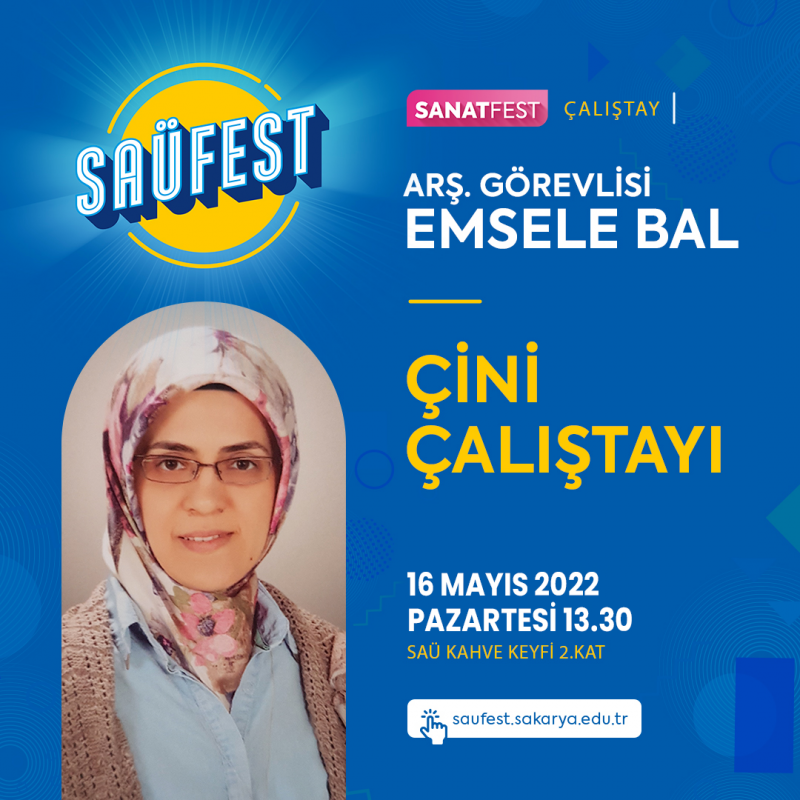 Arş. Gör. Emsele Bal koordinatörlüğünde düzenlenecek olan Çini Çalıştayı 16 Mayıs'ta SAÜ Kahve Keyfi'nde!