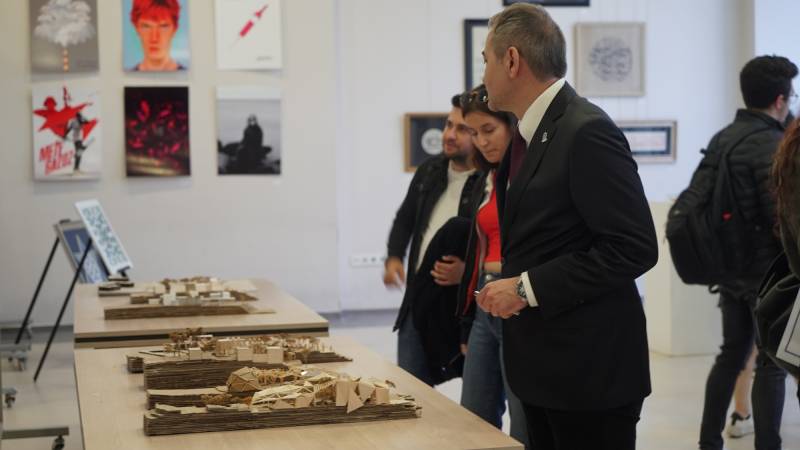 SAÜFEST kapsamındaki Sanatfest etkinlikleri içinde açılan Sanat Tasarım ve Mimarlık Fakültesi öğrencilerinin bütün bölümlerinden öğrencilerin eser seçkilerinden oluşan serginin açılışı STMF Dekanı Prof. Dr. Tahsin Turgay, Dekan yardımcıları Doç. M. Hülya Doğru ve Dr. Öğr. Üyesi Dicle Öney, Fakülte hocaları ve öğrencilerinin katılımı ile 09.05.2022 tarihinde Sakarya Üniversitesi Yeni Kütüphanesi’nde gerçekleştirildi. Sergi 18.05.2022 tarihine kadar gezilebilir.