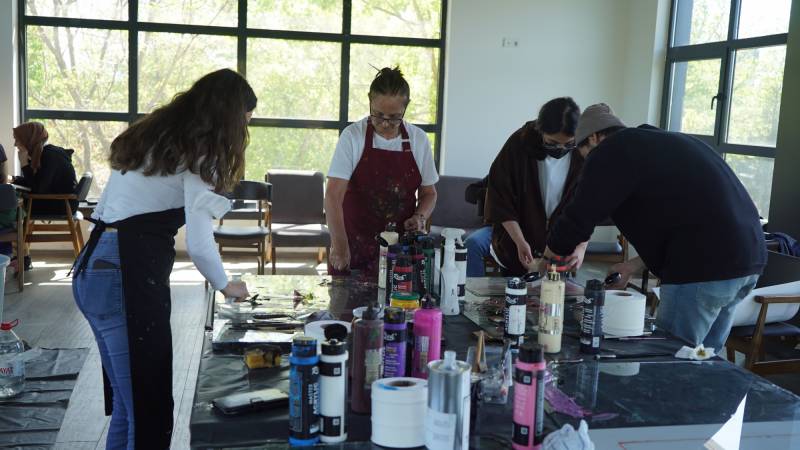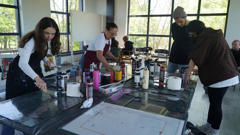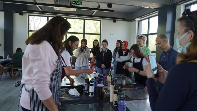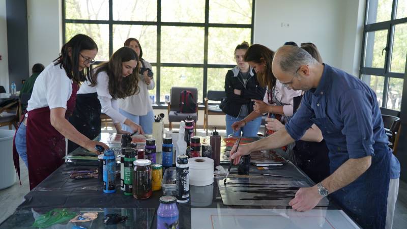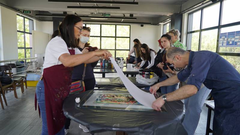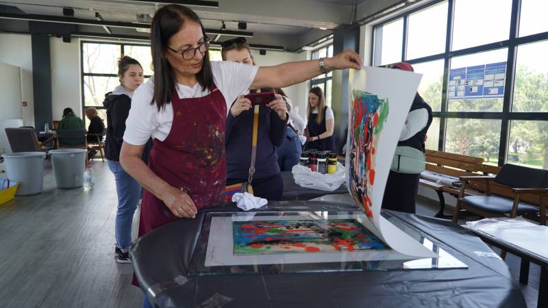 Sakarya Üniversitesinin tertiplediği SAÜFEST’in alt kategorilerinden olan SanatFest kapsamında 10. 05.2022 günü saat 13.00-16.00 saatleri arasında SAÜ Kahve Keyfi’nin ikinci katında STMF Resim Bölümü Öğr. Gör. Gülay İnce, “Cam Baskı” çalıştayı gerçekleştirdi. Cam baskı sanatının örneklerle anlatıldığı çalıştayda yoğun ilgiyle çalışmaları izleyen katılımcıların da cam baskı yapmaları sağlandı.