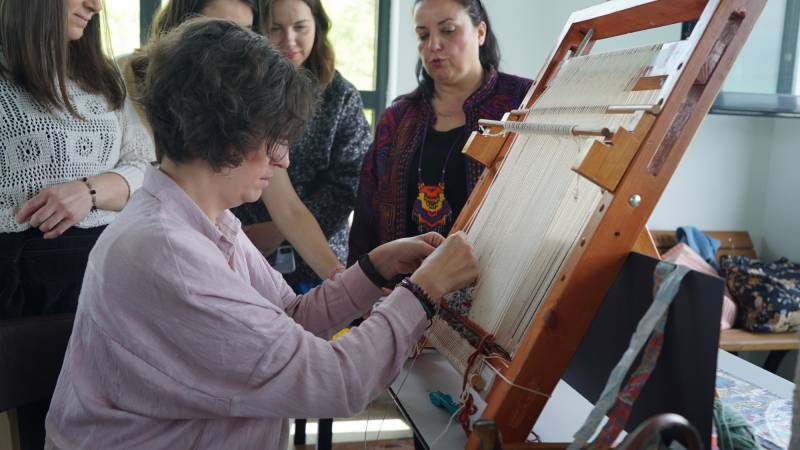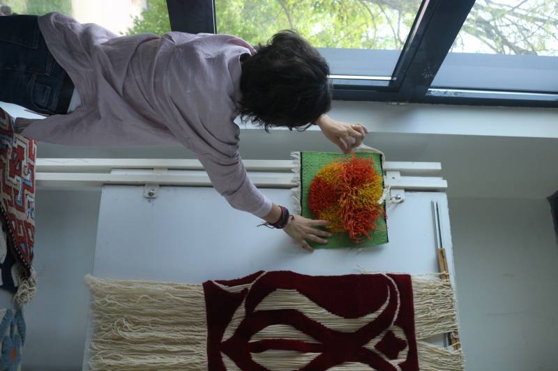 Geleneksel Türk Sanatları Bölümünde görev yapan Arş. Gör. Dr. Mine Taylan tarafından SAÜFEST 2022 sanat etkinlikleri kapsamında 11 Mayıs Çarşamba günü saat 13:00-15:00 arasında bir deneysel dokuma çalıştayı gerçekleştirildi. Lif sanatı ve tarihi hakkında verilen bilgiler ile başlayan çalıştayda geleneksel halı-kilim dokuma teknikleri, geleneğin dışındaki malzemeler ile uygulandı. Teknik ve malzemenin doku ve biçim açısından önemi örnekler ile gösterildi. Kahve Keyfi 2. kattaki çalıştaya öğrenciler ve öğretim elemanları katıldı.