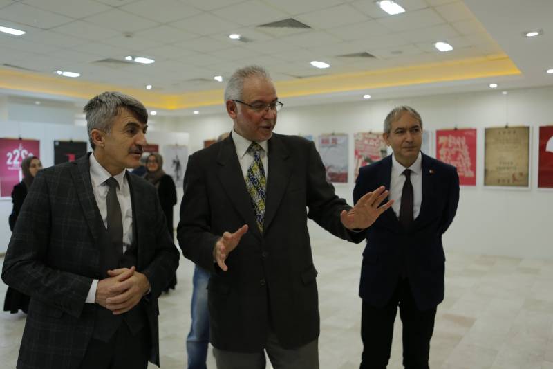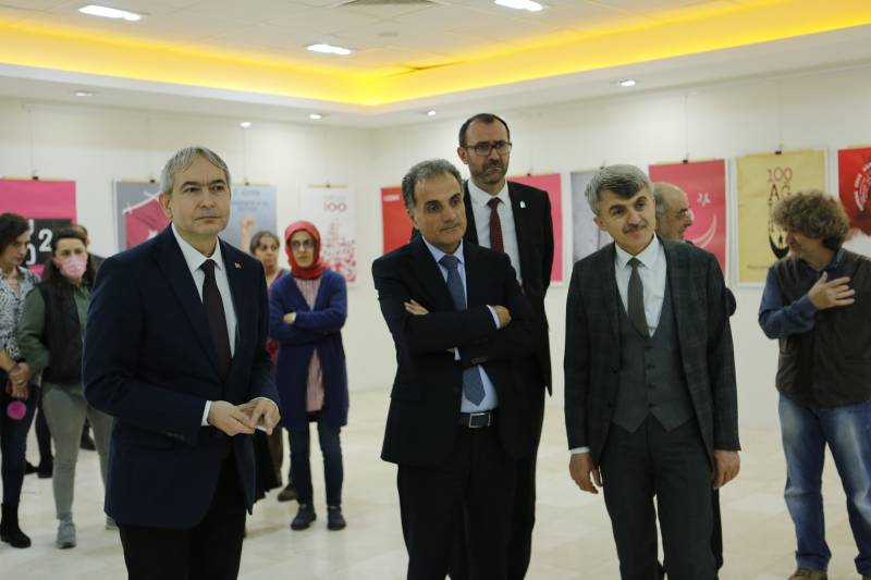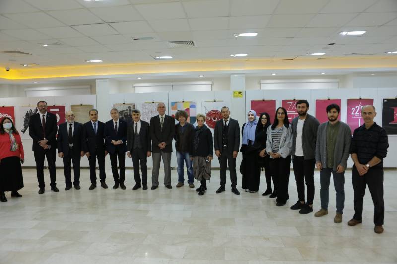 “22’den 22’ye” Temalı Uluslararası Afiş Tasarım Yarışması Sergisinin Beşincisi 21 Kasım 2022’de saat 15.00’de, Sakarya Üniversitesi Sanat, Tasarım ve Mimarlık Fakültesi Sanat Galerisi’nde açıldı. Açılışa Sakarya Üniversitesi Rektörü Prof. Dr. Hamza Al, Dumlupınar Üniversitesi Rektörü Prof. Dr. Kazım Uysal ve Rektör Yardımcısı Prof. Dr. Özer Köseoğlu, DPÜ GSF Dekanı Prof. Dr. Levent Mercin, SAÜ STMF Dekanı Prof. Dr. Tahsin Turgay, Sosyoloji Bölümü öğretim üyelerinden Prof. Dr. Mehmet Tayfun Amman, STMF Dekan yardımcıları Doç. Mesude Hülya Doğru, Dr. Öğr. Üyesi Dicle Öney, STMF Öğretim üyeleri, öğretim elemanları ve kalabalık bir öğrenci grubu katıldı. Prof. Dr. Levent Mercin’in sergi ve uluslararası bir jürinin sergilemeye uygun gördüğü afişler hakkında bilgi verdiği açılış konuşmasından sonra, DPU Rektörü Prof. Dr. Kazım Uysal Rektörü ve SAÜ Rektörü Prof. Dr. Hamza Al sanatın önemi ve sergi ile ilgili görüşlerini bildirdiler. Sergiyi 27 Kasım 2022 tarihine kadar izlenebilir.
