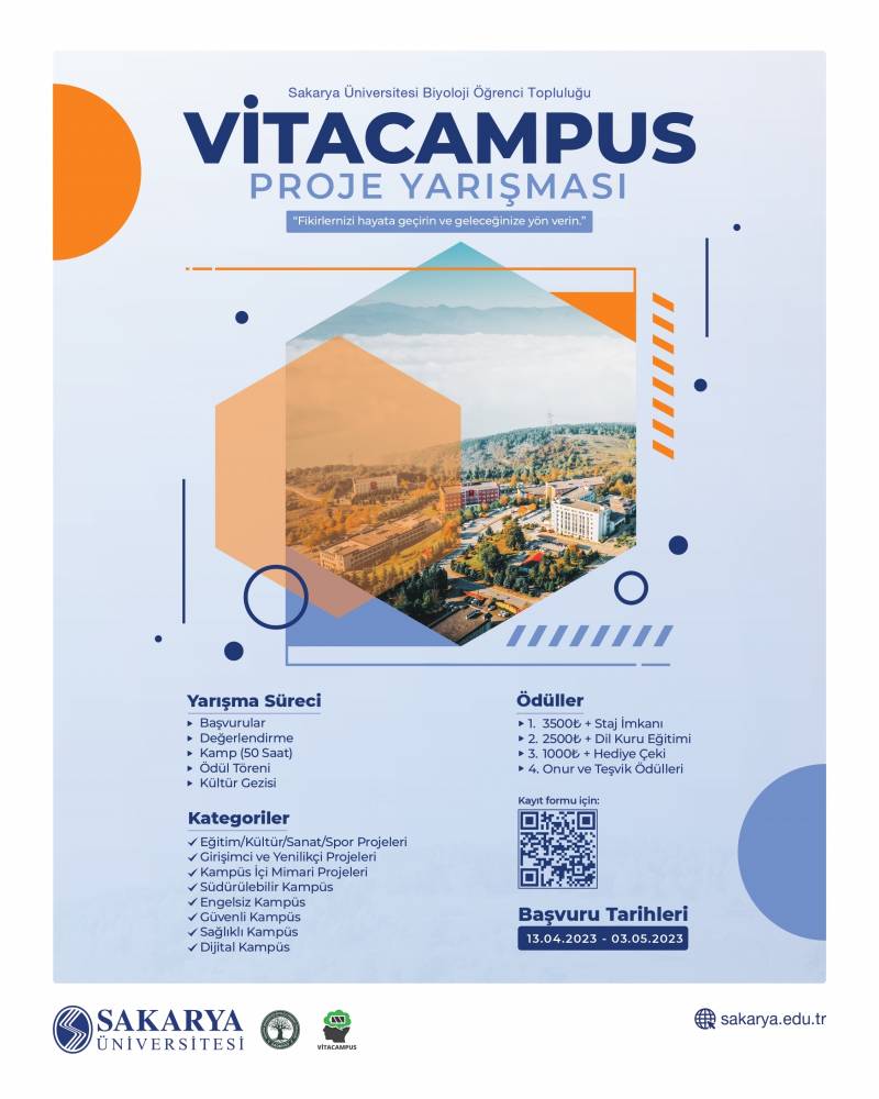 Bu doğrultuda 2023 Mayıs ayında öğrencilerimizin kampüsümüzü geliştirme hususunda söz hakkı almalarını ve çözümün parçası olmalarını hedefleyen Vitacampus Proje Yarışması düzenlenecektir.