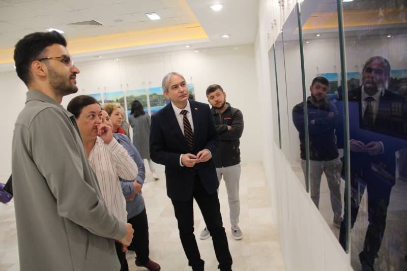 SAÜ STMF Geleneksel Türk Sanatları Bölümü Yüksek Lisans Öğrencisi Ömer Faruk Kumru’nun “İstanbul” adlı kişisel sergisi 29 Mayıs 2023 Pazartesi günü saat 12.00’de Sanat Tasarım ve Mimarlık Fakültesi Sanat Galerisinde Fakülte Dekanı Prof. Dr. Tahsin Turgay tarafından gerçekleştirildi. Sergiye Dekan yardımcısı Doç. M. Hülya Doğru ile fakültenin hocaları, öğrenciler ve ailesi katıldı. Sergide Minyatür alanında Matrakçı Nasuh ve Nusret Çolpan’ın çalışmalarının izinde, geleneksel kurallara uygun olarak üretilmiş özgün dijital eserler 2 Haziran 2023 tarihine kadar Sanat Tasarım ve Mimarlık Fakültesi Sergi Salonunda izlendi.