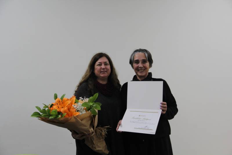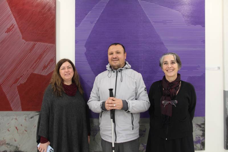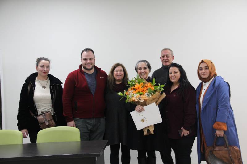 Ayrıca üniversitenin sergi salonunda halen devam eden sergisinde yer alan yapıtlarında da görülüp dokunulabilen işlerini özellikle kendisine ait bir buluş olan ve Türkiye ve Avrupa Birliği fikir hakkını aldığı Körler İçin Renk Alfabesi’nin nasıl ortaya çıktığı bilgisini paylaşmıştır.