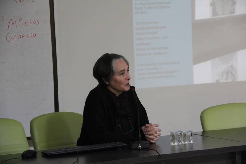 Görseller eşliğinde yapılan konferansta sanatçı; ailesini, eğitimini, mizacını, sanatçı kimliğinin yanı sıra eğitimciliğini, yazılarını, küratoryel çalışmalarını anlatmıştır.