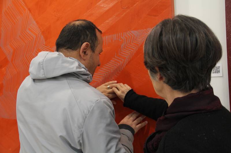 Bu buluşa ve sanatçı davranışına yansıyan olguyla ilgili olarak Sakarya Üniversitesi Sanat Tasarım ve Mimarlık Fakültesi Dekan yardımcısı Doç. Mesude Hülya Doğru’nun desteği ve Sakarya Üniversitesi görme engelli bireylerle ilgili birimde görev yapan İbrahim Bingül tarafından önerilerek yapılan, sanatçının kendi seslendirmesi ile uygulanan her yapıta ait QR/karekod kodlu anlatım uygulaması tekrar gündeme getirilmiştir. Buna bağlı olarak konferansı takiben görme engelli bireylerle sergi alanı içinde bu yenilikçi ve çağdaş uygulama tekrar deneyimlenmiş sanatçı ile birlikte değerlendirilmiştir.
