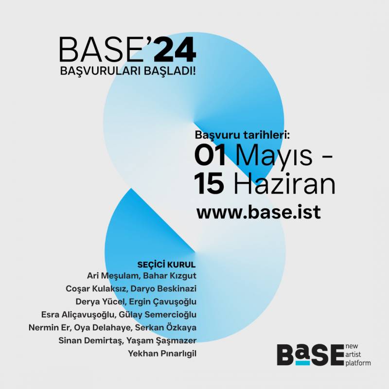 8. yılına giren BASE'in 2024 sergisi için başvurularımız www.base.ist üzerinden başladı ve 15 Haziran'da sona erecek. 1 Ocak 2024-31 Aralık 2024 yılı tarihleri arasında mezun olacak son sınıf öğrencileri başvuru yapabilir.
