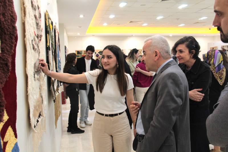 Geleneksel Türk Sanatları Bölümü lisans ve yüksek lisans öğrencilerinin Doç. Mine Taylan koordinatörlüğünde verilen Lif Sanatı I-II ve Dokuma Resim Sanatı I-II derslerinde uyguladıkları dokumalar, 05-09 Mayıs 2025 tarihleri arasında Sanat Tasarım ve Mimarlık Fakültesinin Sanat Galerisinde izleyici ile buluştu. 05 Mayıs pazartesi günü gerçekleşen sergi açılışına Rektör Yardımcı ve Sanat Tasarım ve Mimarlık Fakültesi Dekan Vekili Prof. Dr. Halit Yaşar, Dekan Yardımcısı Dr. Öğr. Üyesi Mehmet Akif Yıldız, bölüm başkanları, öğretim elemanları ve öğrenciler katıldı. 36 adet dokumanın yer aldığı sergideki eserler geleneksel dokuma teknikleri ile uygulanmış özgün tasarımlardan oluşmaktadır. Geleneksel ve çağdaş olanı gerek teknik gerekse kullanılan malzeme açısından da bir araya getirmeyi amaçlayan eserlerde hem doğal ve sentetik çok farklı ip çeşitleri kullanılmıştır. Bu bağlamda sergi; tekstil malzemelerinin ve üretim tekniklerinin sanatsal bir ifade aracı olarak kullanıldığı deneysel ve özgün "Lif Sanatı" örneklerini içermektedir.