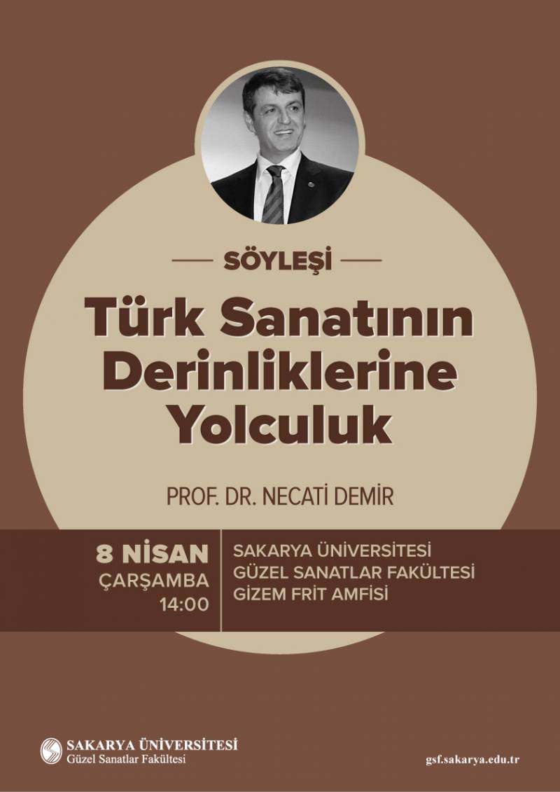 Prof. Dr. Necati Demir'in "Türk Sanatının Derinliklerine Yolculuk" isimli söyleşisi 8 Nisan Çarşamba günü saat 14:00'de Sakarya Üniversitesi Güzel Sanatlar Fakültesi Gizem Frit Amfisi'nde yapılacaktır.