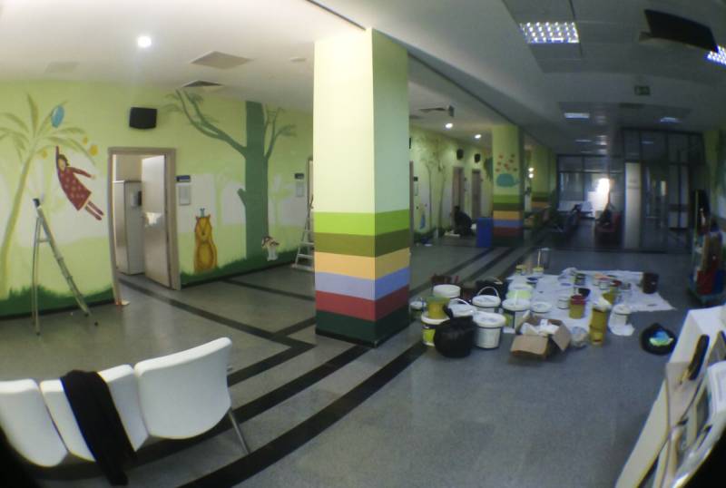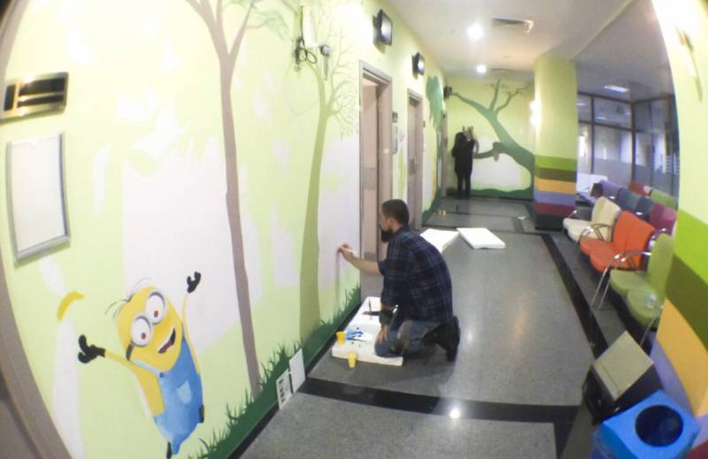 Sakarya Üniversitesi Sanat, Tasarım ve Mimarlık Fakültesi Resim Bölümü tarafından gerçekleştirilen Sakarya Eğitim ve Araştırma Hastanesi Çocuk Polikliniği'nin duvar resimleri projesi, 2 haftalık çalışmanın sonucunda, gönüllü öğrenci ve öğretim elemanlarının katılımıyla çocuklar için çok daha sempatik bir görünüme kavuşmuştur.