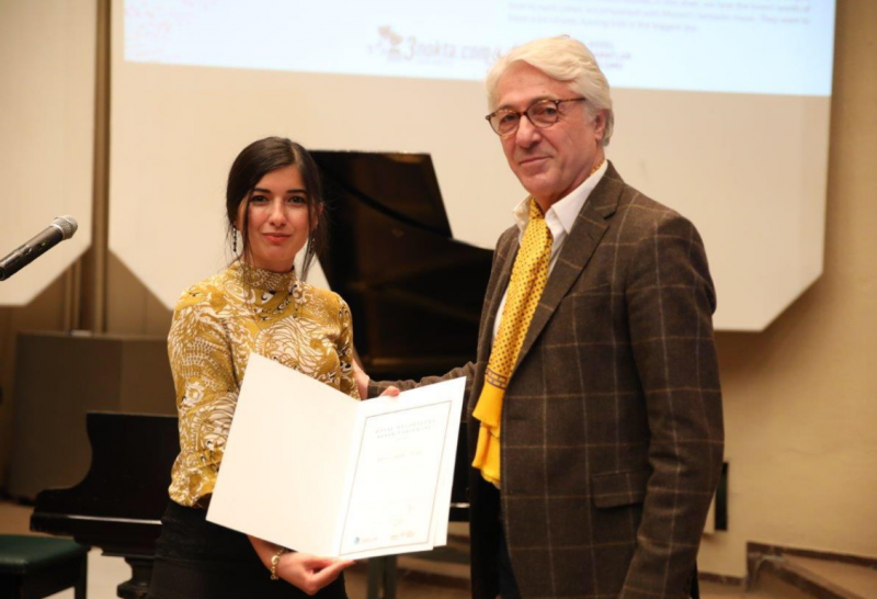 İstanbul Devlet Opera ve Balesi Müdürü Sn. Suat Arıkan, Ayşe Gül Tatar'a başarı belgesini ödül töreninde teslim etti.